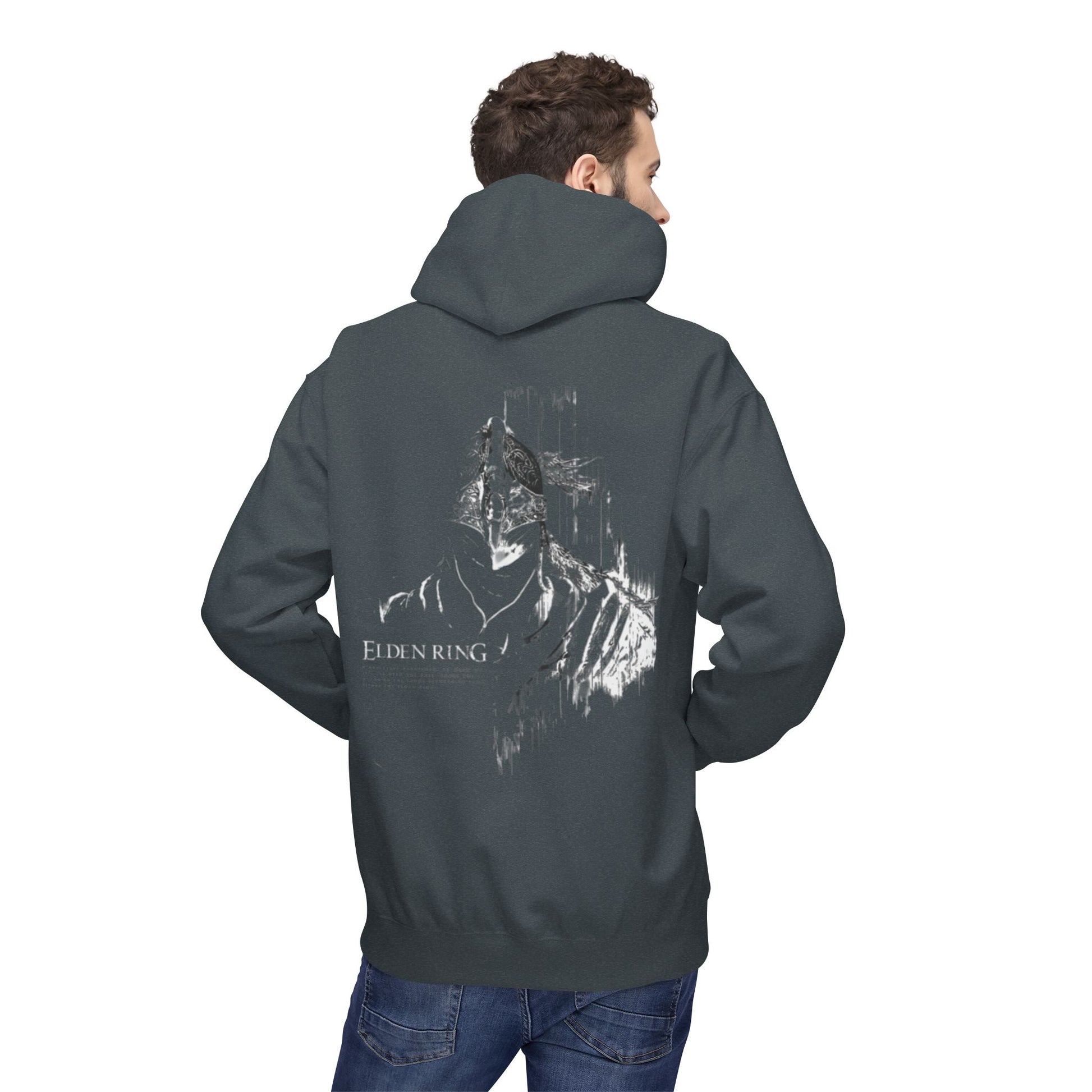 Lightweight yet substantial, this midweight fleece hoodie feels like your go-to layer for gray mornings and late-night walks. The soft, brushed interior and relaxed dropped shoulders create a lived-in comfort, while a subtle, distressed front emblem and larger abstract back print give it quiet edge. Wear it on damp city evenings, layered under a coat or alone with jeans — it moves easily from studio sessions to coffee runs. Thoughtfully made with OEKO-TEX certification and socially responsible manufacturing, the piece sits well with anyone who cares about craft and conscience. The pouch pocket and two-piece lined hood add warmth and function without fuss.